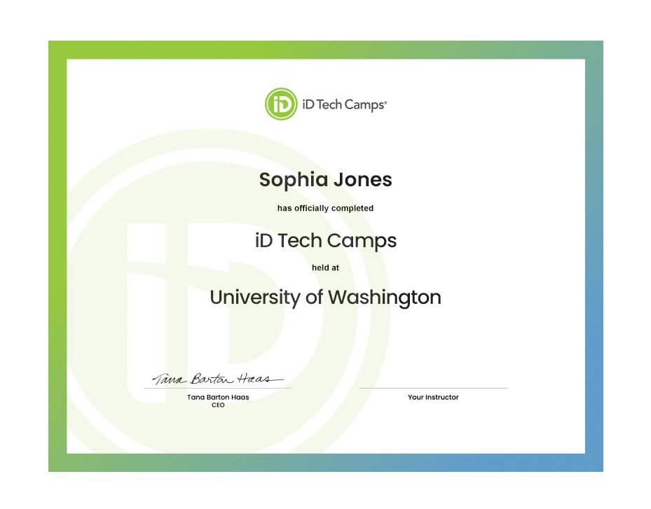 At the conclusion of your child's 3D printing summer camp, they will receive an official iD Tech diploma and course transcript outlining the skills they learned over the course of the week.