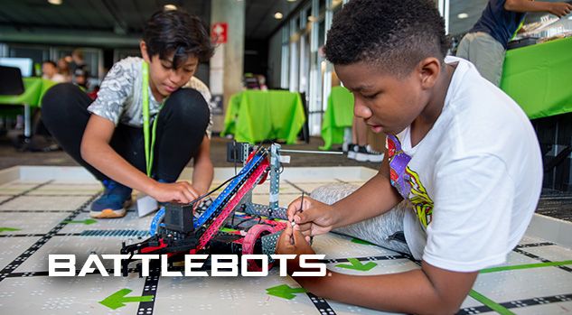 The ultimate showdown is here! BattleBots® combines the craftsmanship of engineering with the high-octane excitement of a robotics championship. Grab your goggles and get ready to build a robot from scratch before battling in the arena. With your teammates, you’ll brainstorm and workshop your bot with hands-on building challenges. Design custom attachments like a claw arm or battering ram and tackle a series of competitions, from time trial races to capture the flag! Follow design standards set by tech experts at BattleBots® and optimize your robot until it’s ready to rumble in a BattleBots®-style robot tournament! Think you have what it takes to make it to the winner's circle? “It’s robot fighting time!"