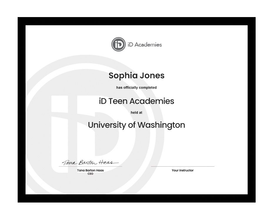 At the conclusion of your teen's course, they will receive an official iD Tech diploma and course transcript outlining the skills they learned over the session.
