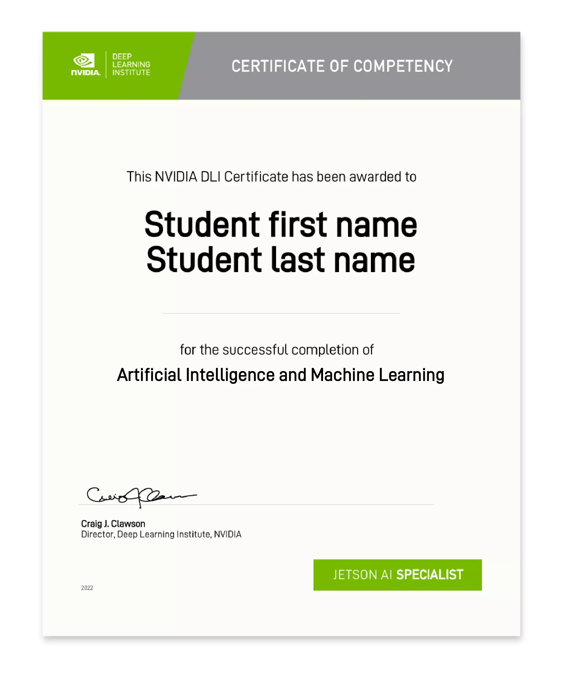 Upon completion of this course, NVIDIA will review each student’s final project to determine eligibility for the certificate. This certificate signifies students’ hard work and skills gained and is a valuable asset that will help them stand out to colleges and future employers.